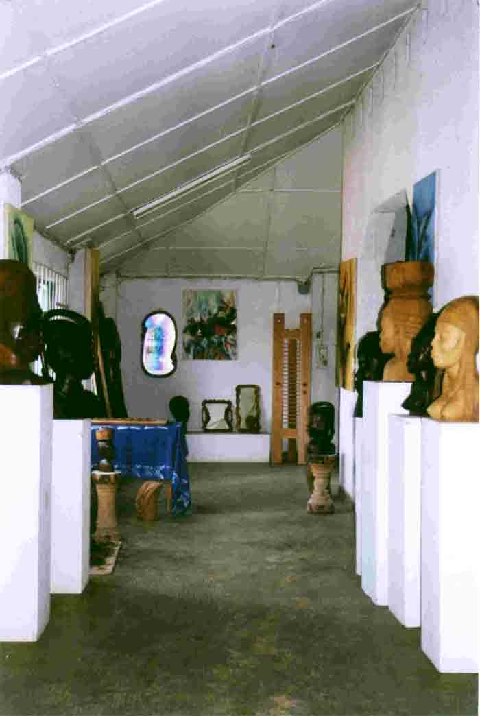 Lors de notre visite au Centre nous avons rencontré Lartey, élève de troisième année, spécialité "staff" (platre). Son but est de pouvoir enseigner cette discipline et pour cela il a besoin de continuer ses études, il aimerait les continuer à l'étranger. Il réalise des ornements linéaires et circulaires pour les décorations murales. Il sait modeler, graver, décorer le platre en imitant le le marbre et la céramique. Ci-dessous on peut voir Lartey avec une des ses créations.